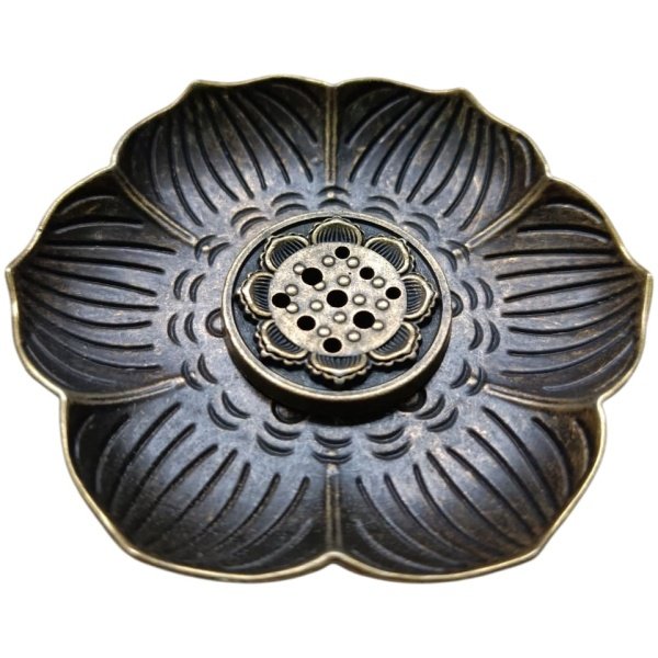 PORTA SAHUMERIO FLOR DE LOTO DE METAL (9CM)