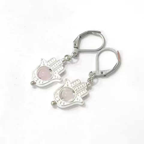ARITOS MANO FATIMA CON ESFERA CUARZO ROSA