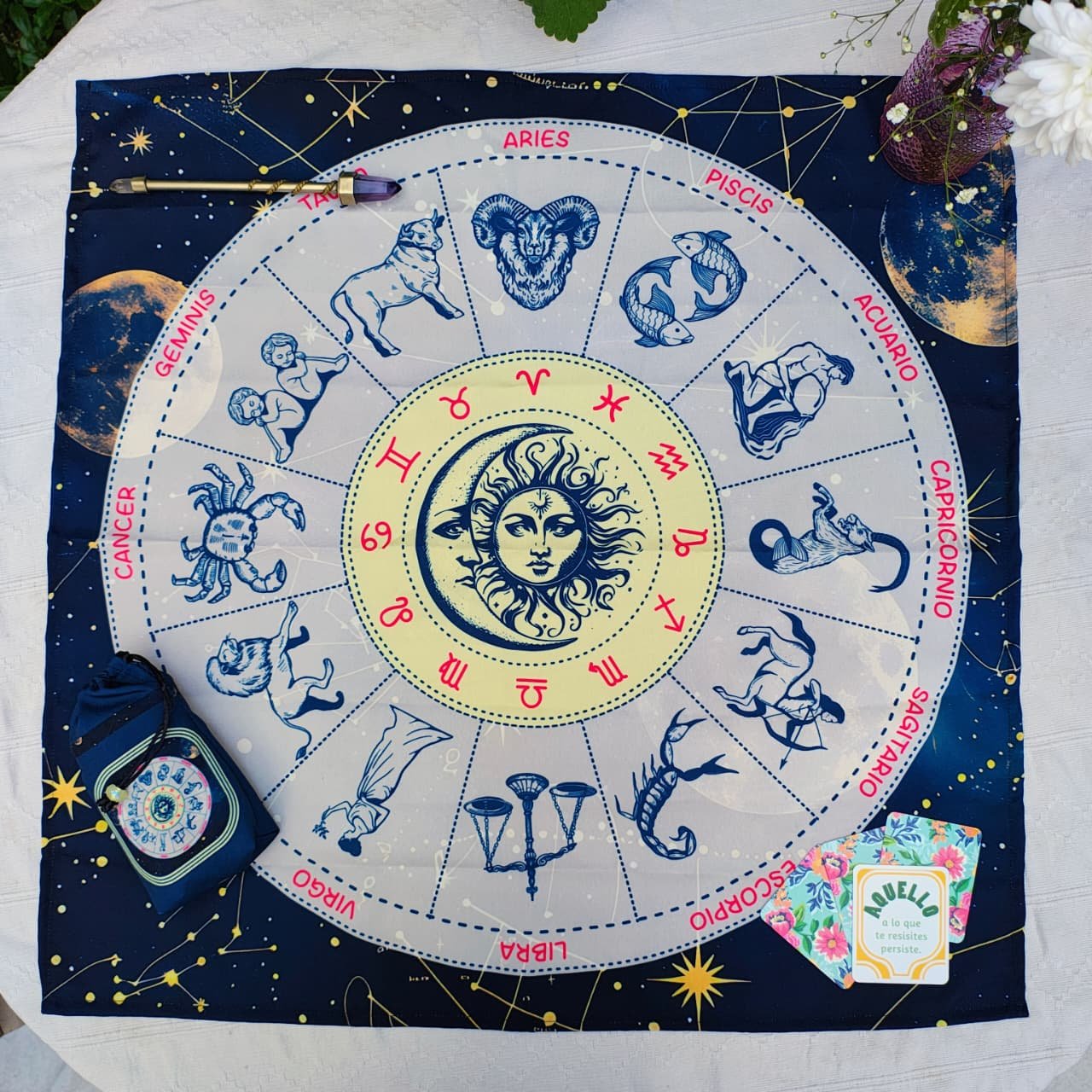 ASTROLOGIA AZUL PAÑO DE TAROT GRANDE 65X65CM CON BOLSA