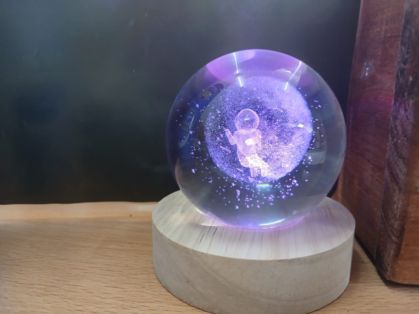 LAMPARA LUZ DE COLORES ASTRONAUTA ESFERA DE CRISTAL 6CM