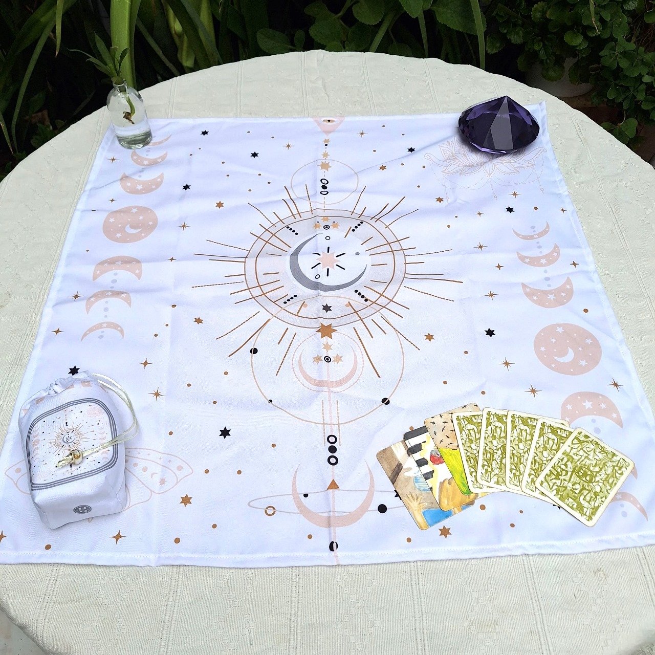 LUNAS CLARO PAÑO DE TAROT GRANDE 65X65CM CON BOLSA
