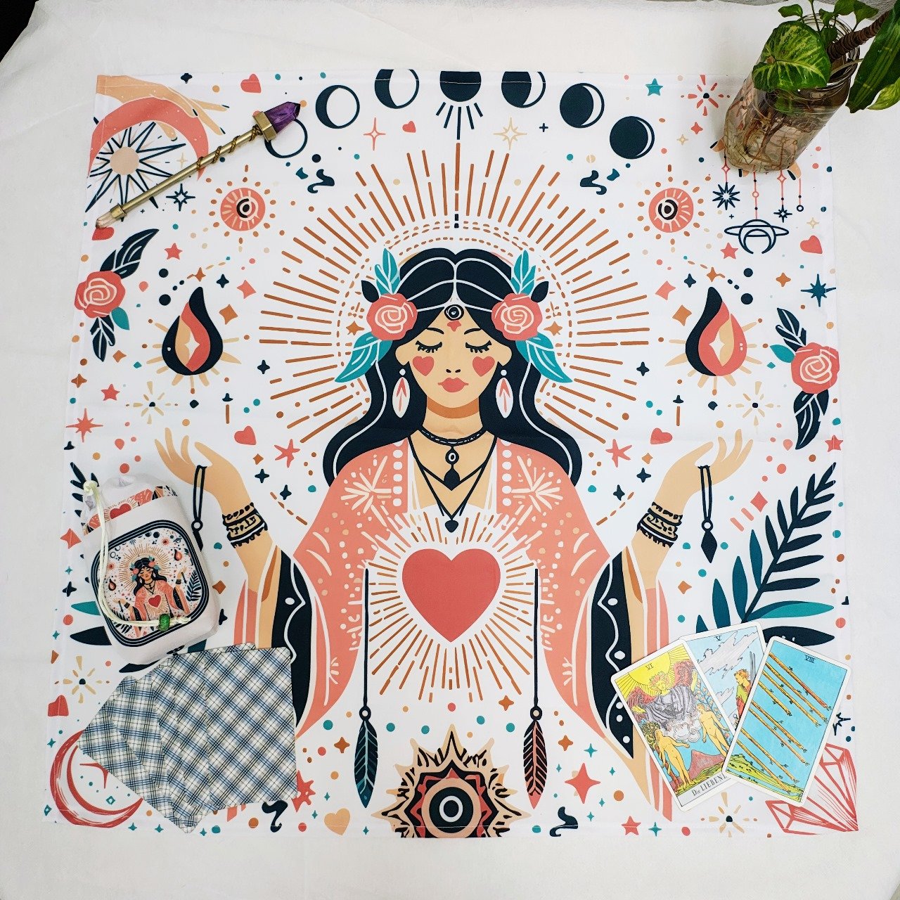 MUJER CORAZON PAÑO DE TAROT GRANDE 65X65CM CON BOLSA